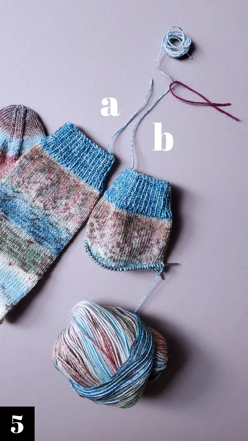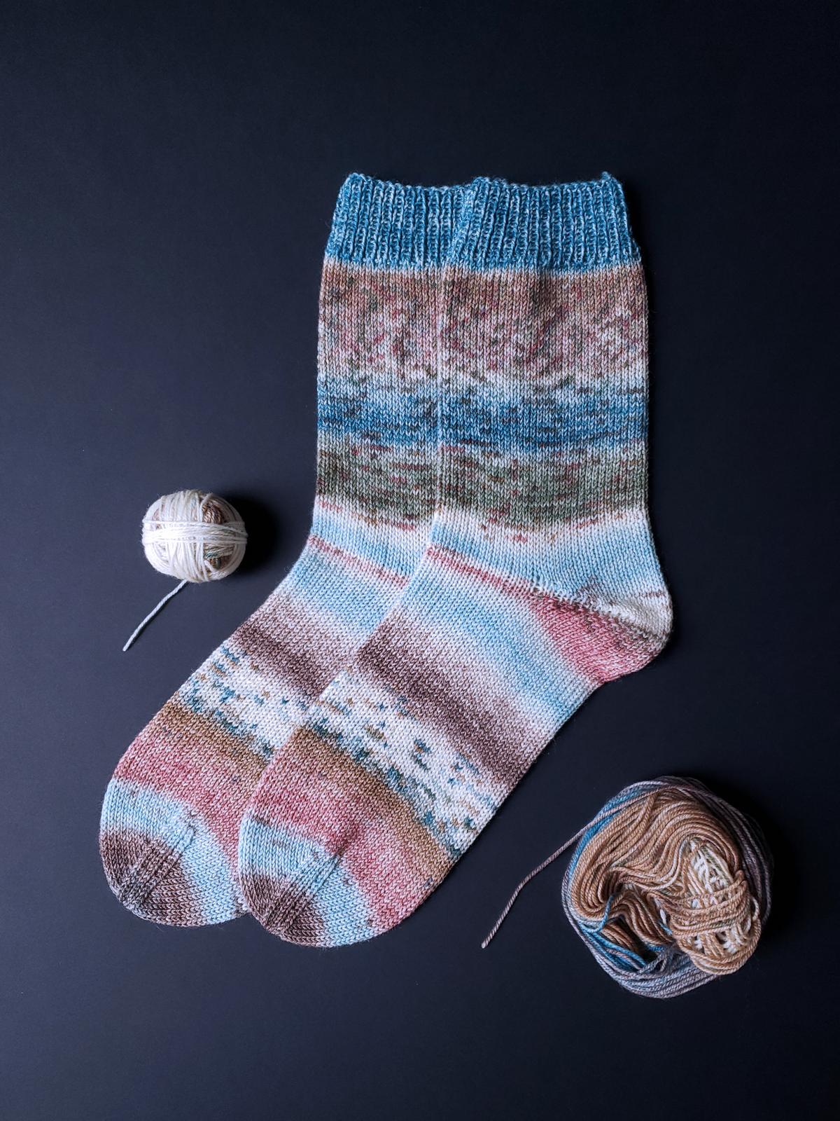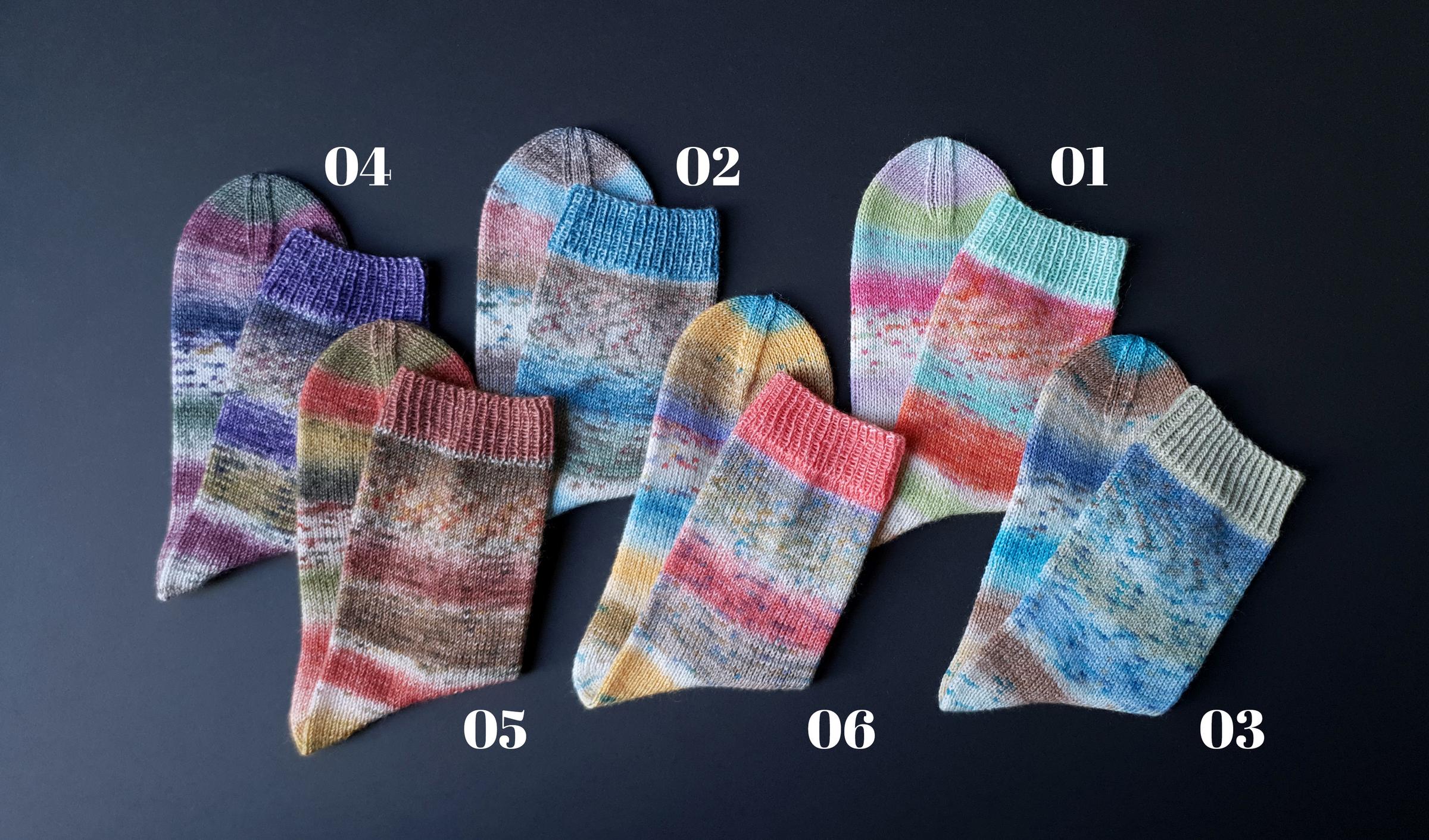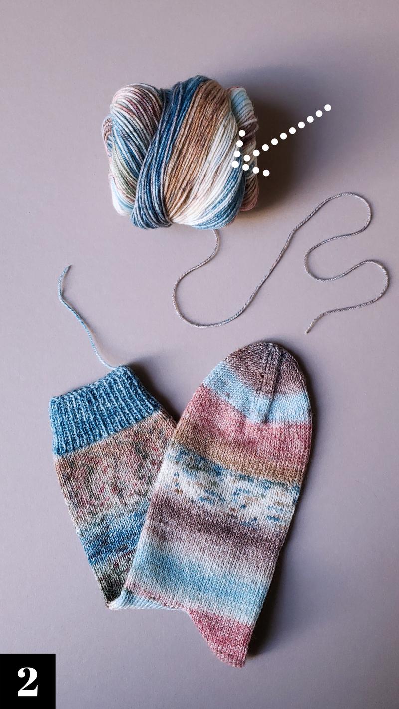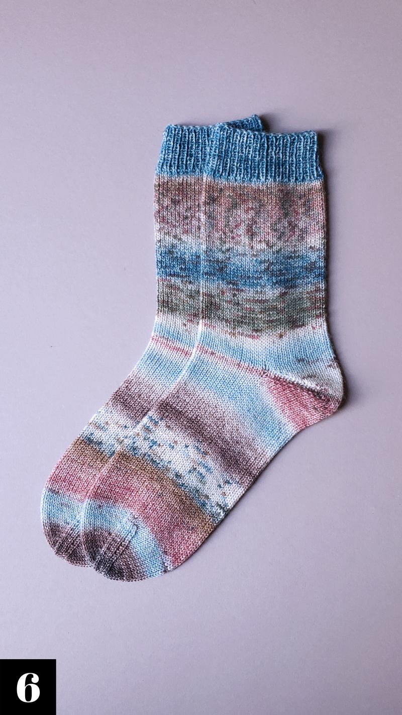 Weitere Detail-Informationen zu den Socken, dem Garn und den verwendeten Farben mit den exakten Farb-Nummern findest du in der Foto-Collage hinter allen Bildern mit einem eingekreisten